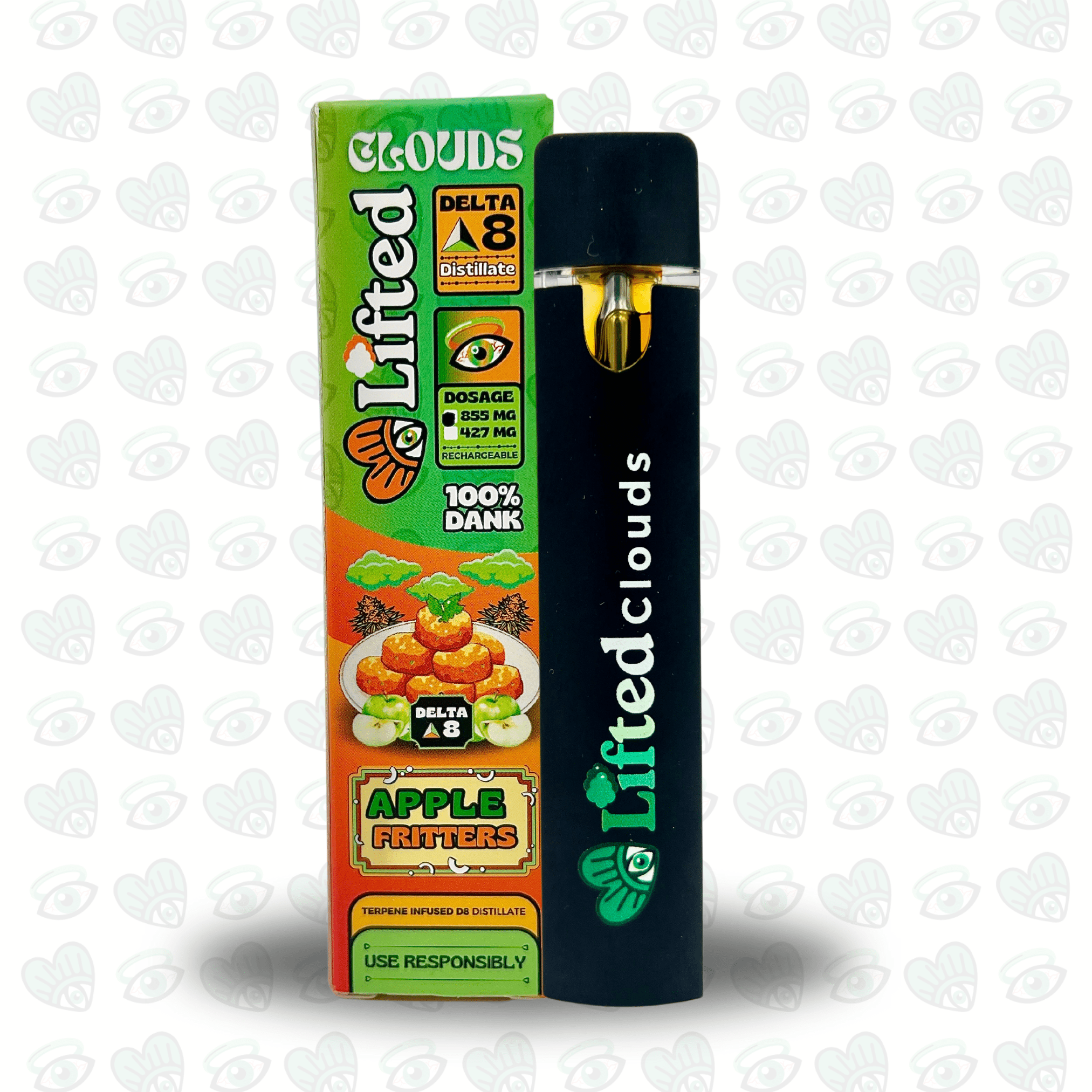 Indulge in the rich and potent experience of Lifted D8 Apple Fritters Disposable. This hybrid strain, a cross of Sour Apple and Animal Cookies, delivers a relaxing high paired with a sweet, earthy, and cheesy aroma, making it a perfect choice for unwinding after a long day.