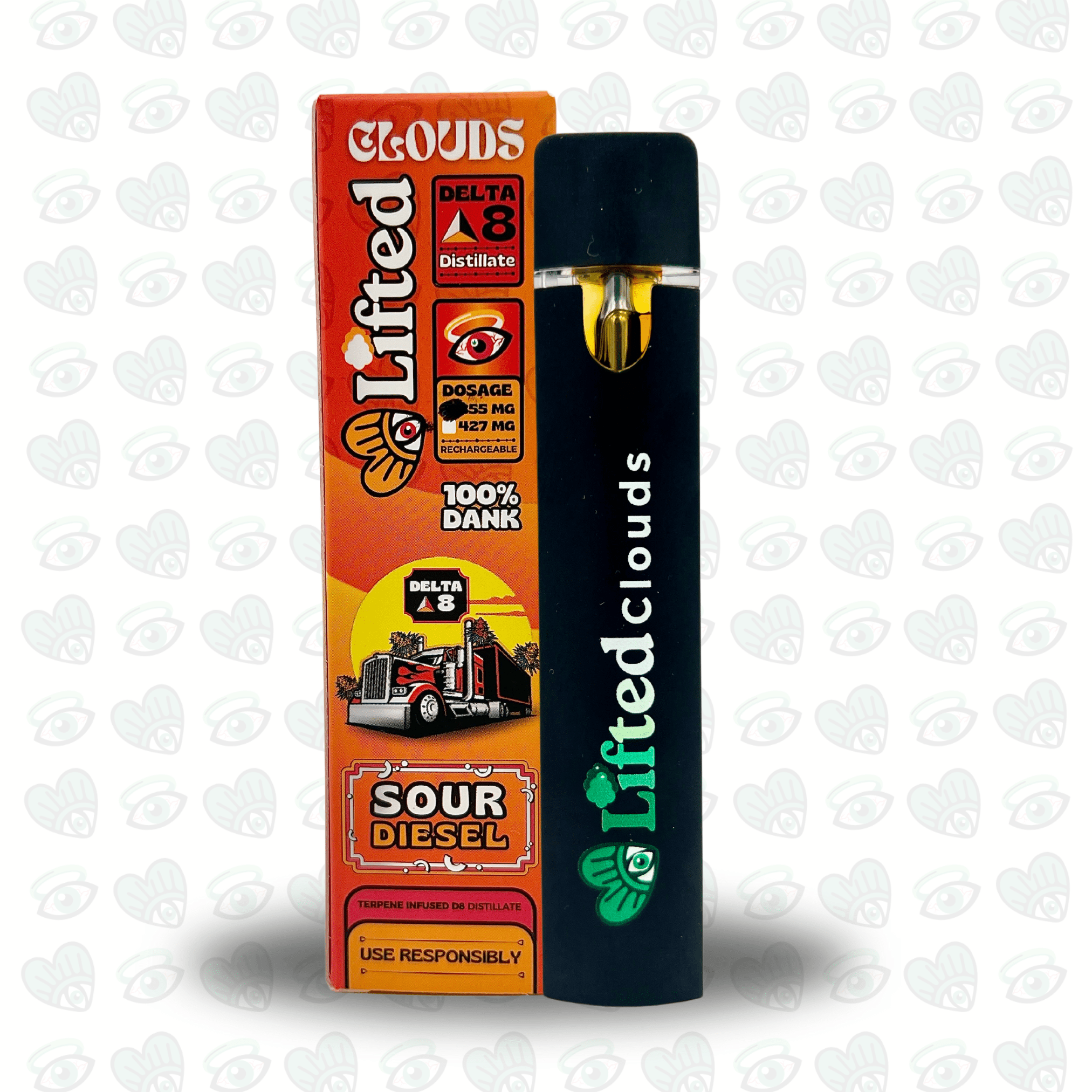 Unleash the power of Lifted D8 Sour Diesel Disposable, a Delta-8 THC vape designed to deliver quick and energizing effects. A potent sativa strain (Chemdawg × Super Skunk), Sour Diesel is famous for its diesel aroma and fast-acting, uplifting high, making it perfect for daytime use. Legendary since the early 1990s, it provides a bold and stimulating experience.