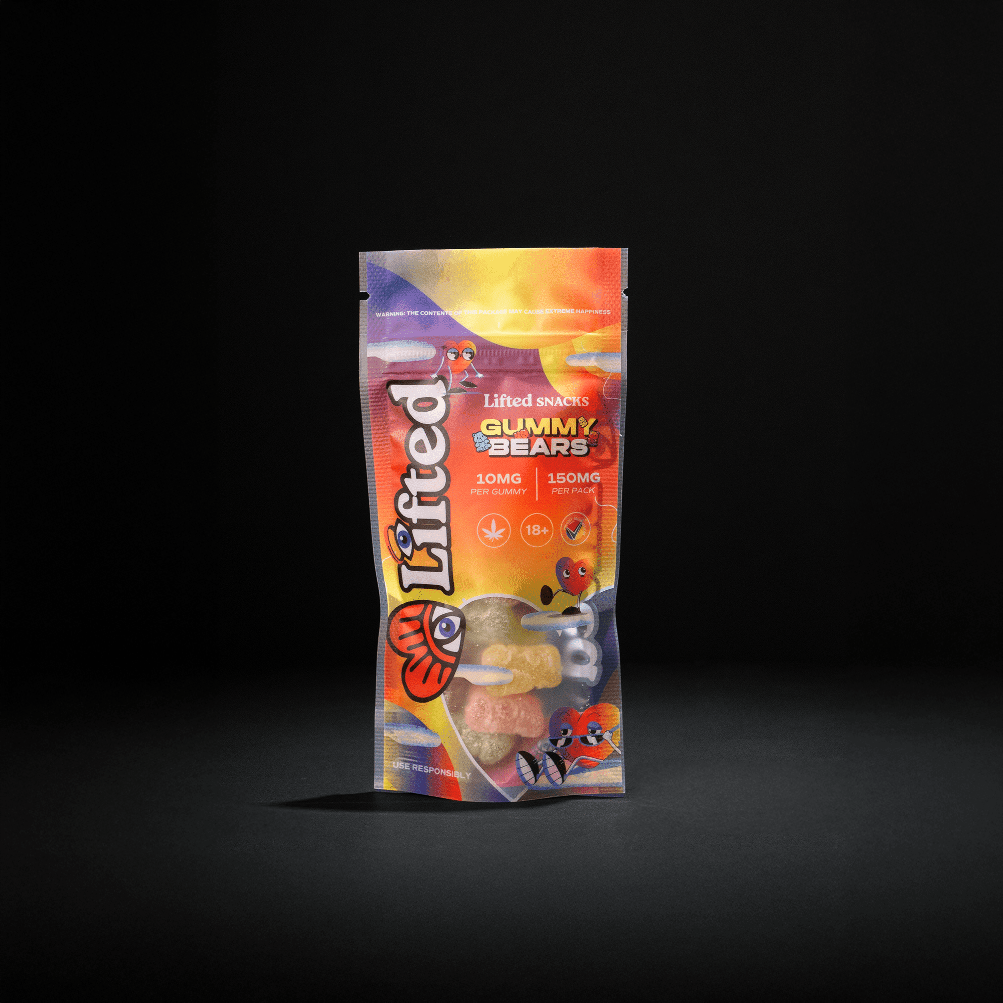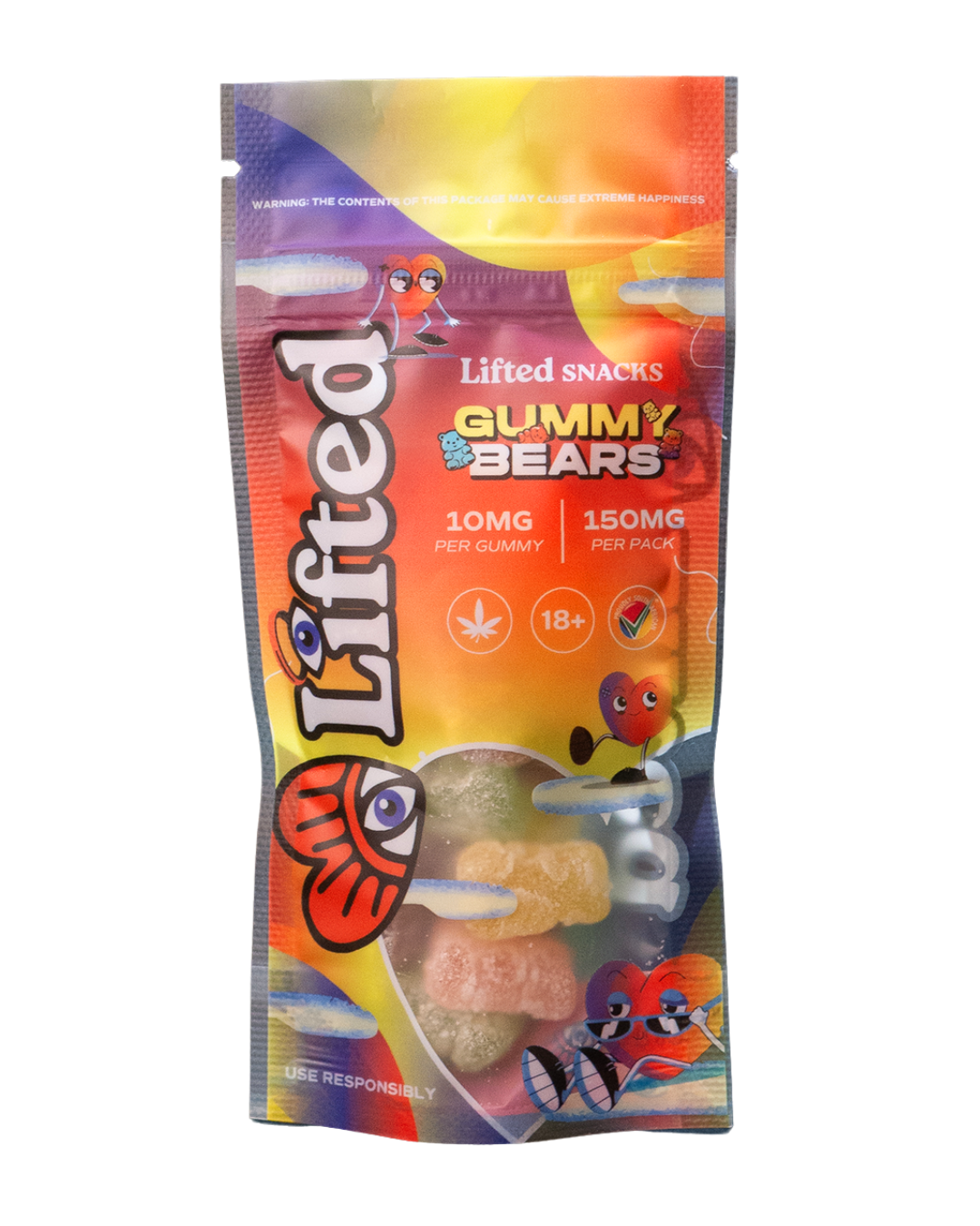 A bag of Rainbow Fruity Flavoured Gummy Bears, dosed to Perfection.