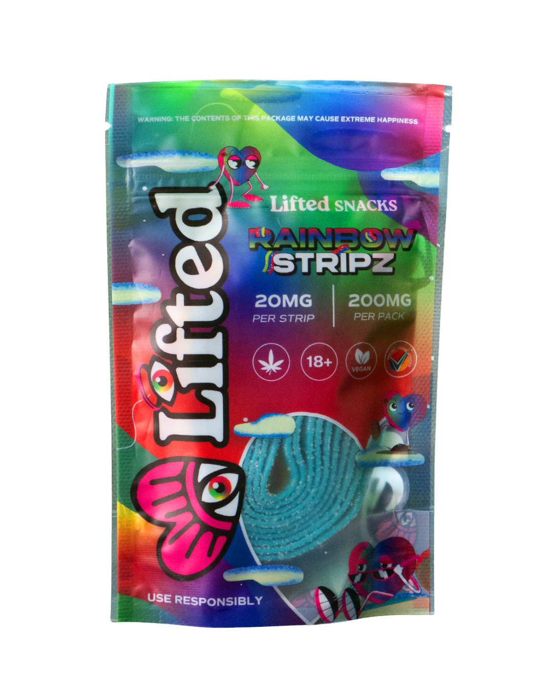 Bursting with fruity flavor and packed with pure distillate, Lifted Rainbow Strip Gummies offer a delicious way to enjoy THC.